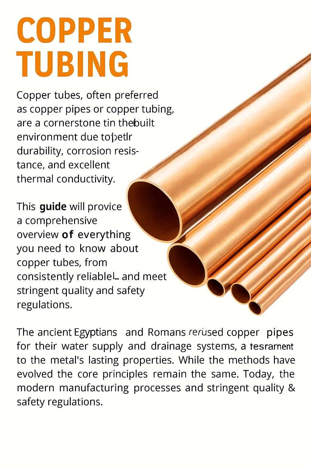 Bruken av kobber til transport av vann stammer tusenvis av år tilbake. De gamle egypterne og romerne brukte kobberrør til vannforsynings- og dreneringssystemer, et vitnesbyrd om metallets varige egenskaper. Mens metodene har utviklet seg, forblir kjerneprinsippene de samme. I dag sikrer moderne produksjonsprosesser og standardisert praksis at kobberrør er konsekvent pålitelige og oppfyller strenge kvalitets- og sikkerhetsforskrifter, noe som gjør dem til en viktig komponent i det bygde miljøet.