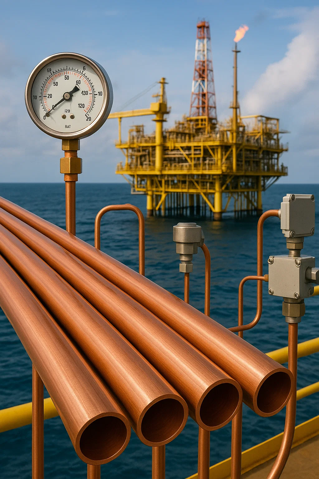 | Olje- og gassindustrien | Brukes til væske- og gassoverføring, trykksensorer og temperatursensorer. Kobbers korrosjonsmotstand er nøkkelen. | Kobberrør are in steady demand for oil and gas operations, especially in offshore drilling platforms and harsh environments. |
