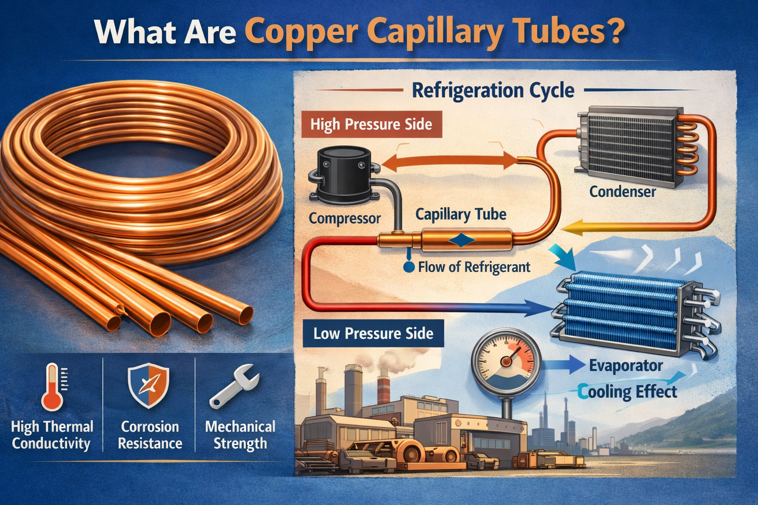 Kjølesystemer er essensielle i dagens liv, fra konservering av mat og medisin til å opprettholde komfellerten i hjemmene og arbeidsplsomsene våre. En av nøkkelkomponentene som sikrer effektiv drift av disse systemene er kapillærrør . Blant forskjellige materialer som brukes til kapillærrør, kobber har vist seg å være et ideelt valg på grunn av sine unike egenskaper.