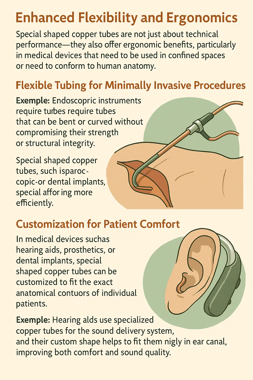 I medisinsk utstyr som f.eks høreapparater , proteser , eller tannimplantater , spesialformede kobberrør kan tilpasses for å passe de nøyaktige anatomiske konturene til individuelle pasienter. Denne tilpasningen forbedrer både komfort og effektivitet av enheten.