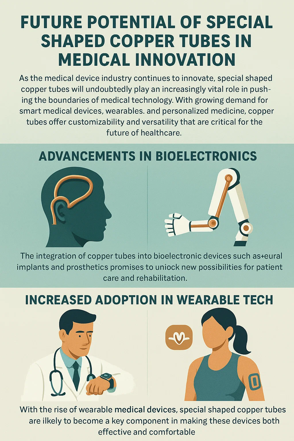 Økt bruk i Wearable Tech : Med fremveksten av bærbart medisinsk utstyr, spesialformede kobberrør vil sannsynligvis bli en nøkkelkomponent for å gjøre disse enhetene både effektive og komfortable.